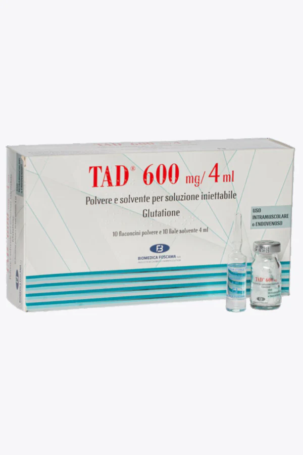 Το TAD 600mg είναι μια μορφή του συμπληρώματος διατροφής Γλουταθειόνη, που χορηγείται μέσω ένεσης. Η ειδική μορφή της Γλουταθειόνης επιτρέπει την ταχεία και αποτελεσματική εισαγωγή της ουσίας στην κυκλοφορία του αίματος, αποφεύγοντας την επεξεργασία από το πεπτικό σύστημα.